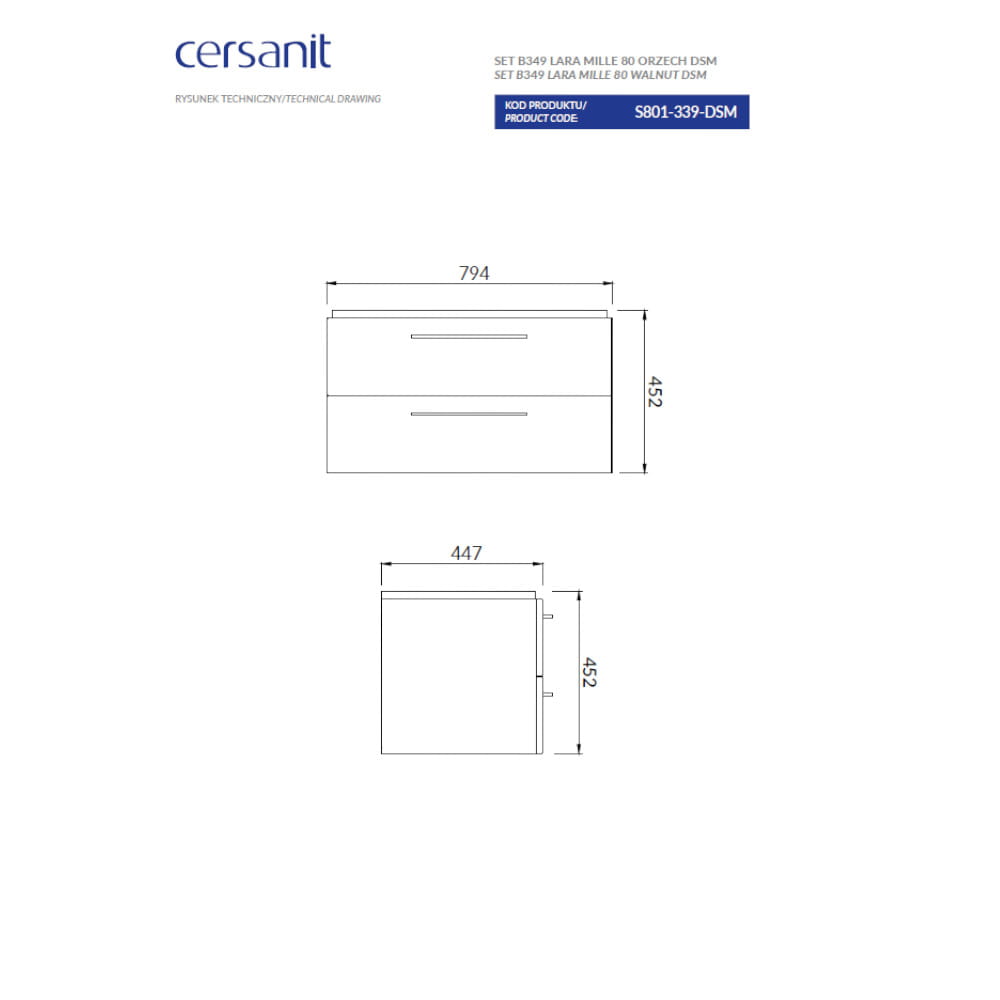 Cersanit Lara Mille zastaw szafka z umywalką orzech 80 cm