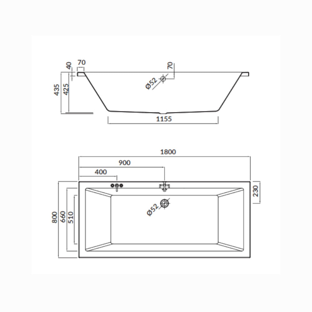 Umiejscowienie odpływu: Odpływ centralny, przy dłuższym boku
