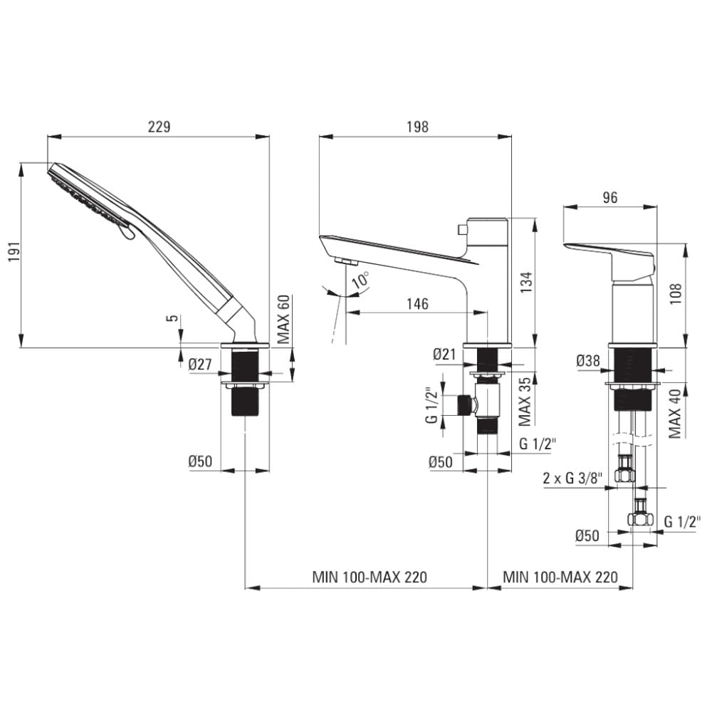 Zasięg wylewki: 146mm