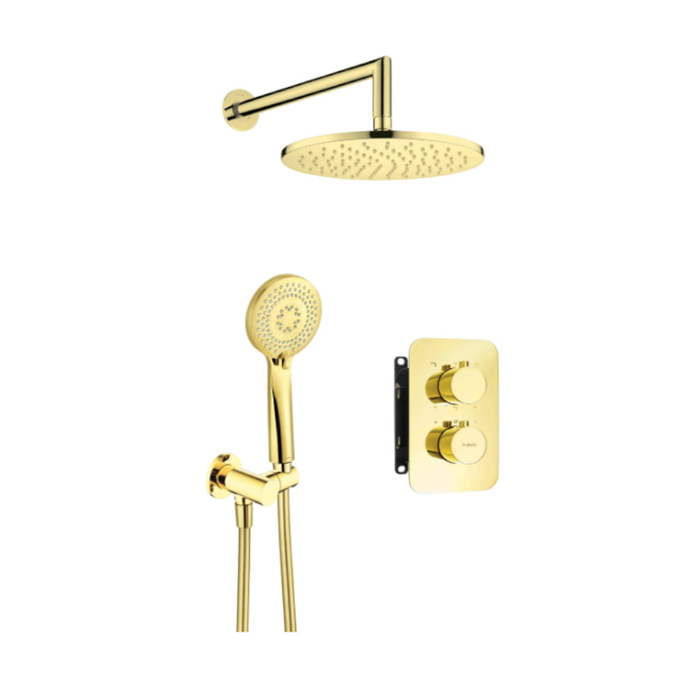 Deante Box zestaw podtynkowy natryskowy okrągły z boxem termostatycznym gold