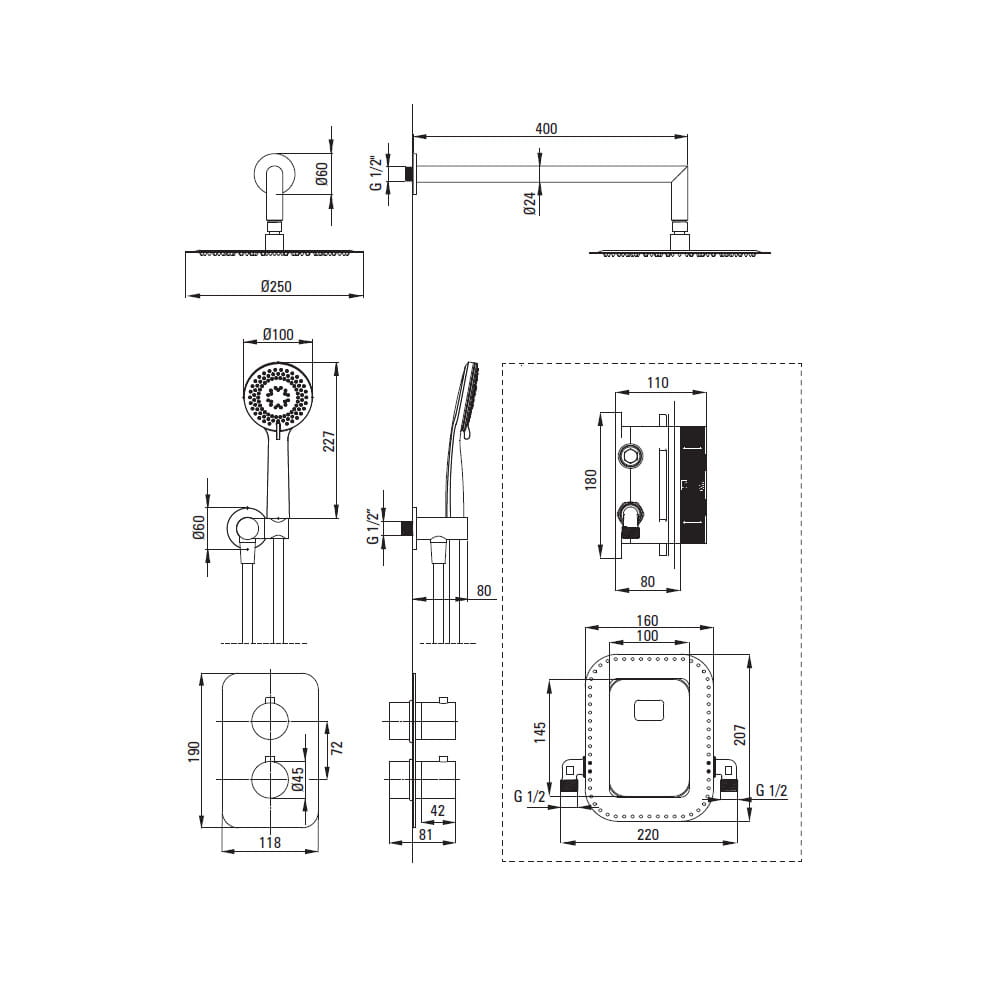 Rodzaj baterii: BOX podtynkowy, termostatyczna