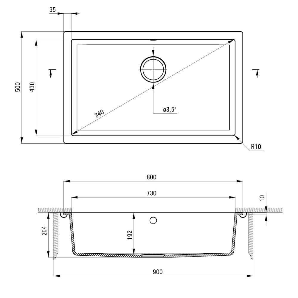 Deante Corda zlewozmywak granitowy 1-komorowy podwieszany 80x50 nero