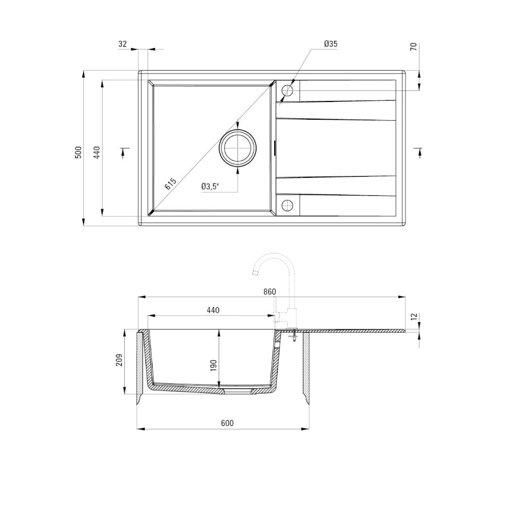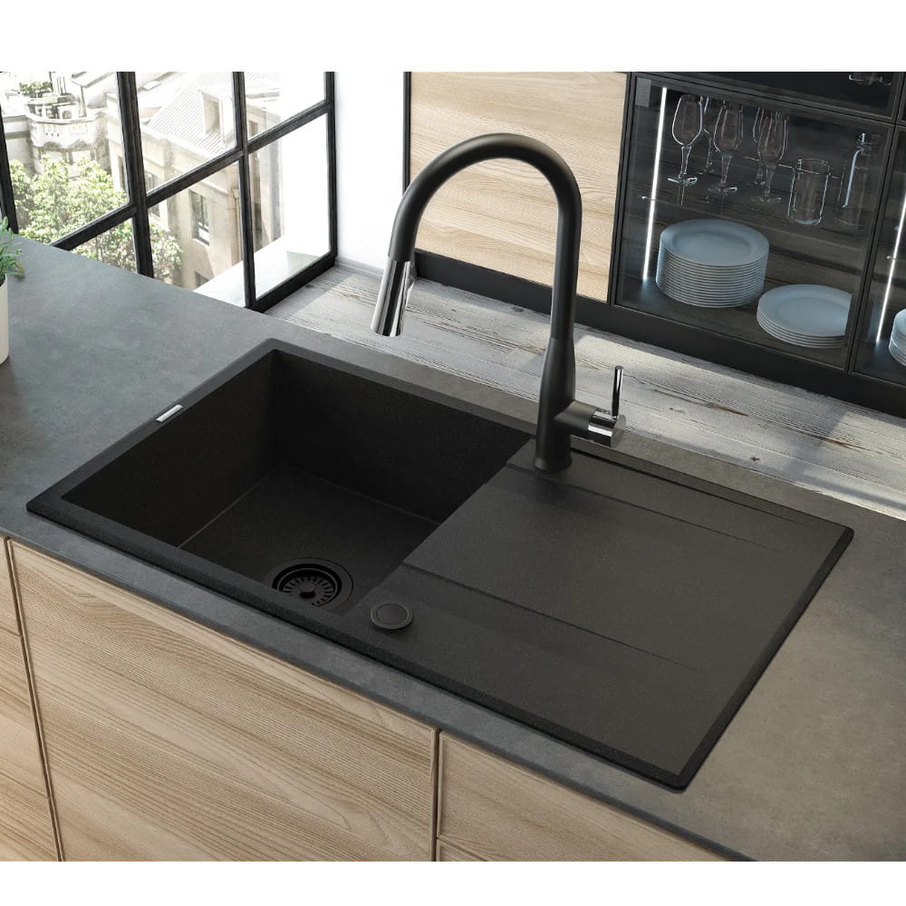 Deante Eridan zlewozmywak granitowy 1-komorowy z ociekaczem 86x50 nero
