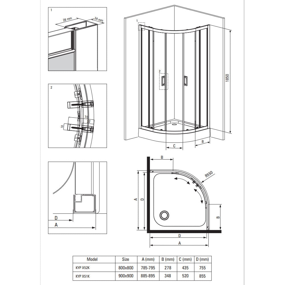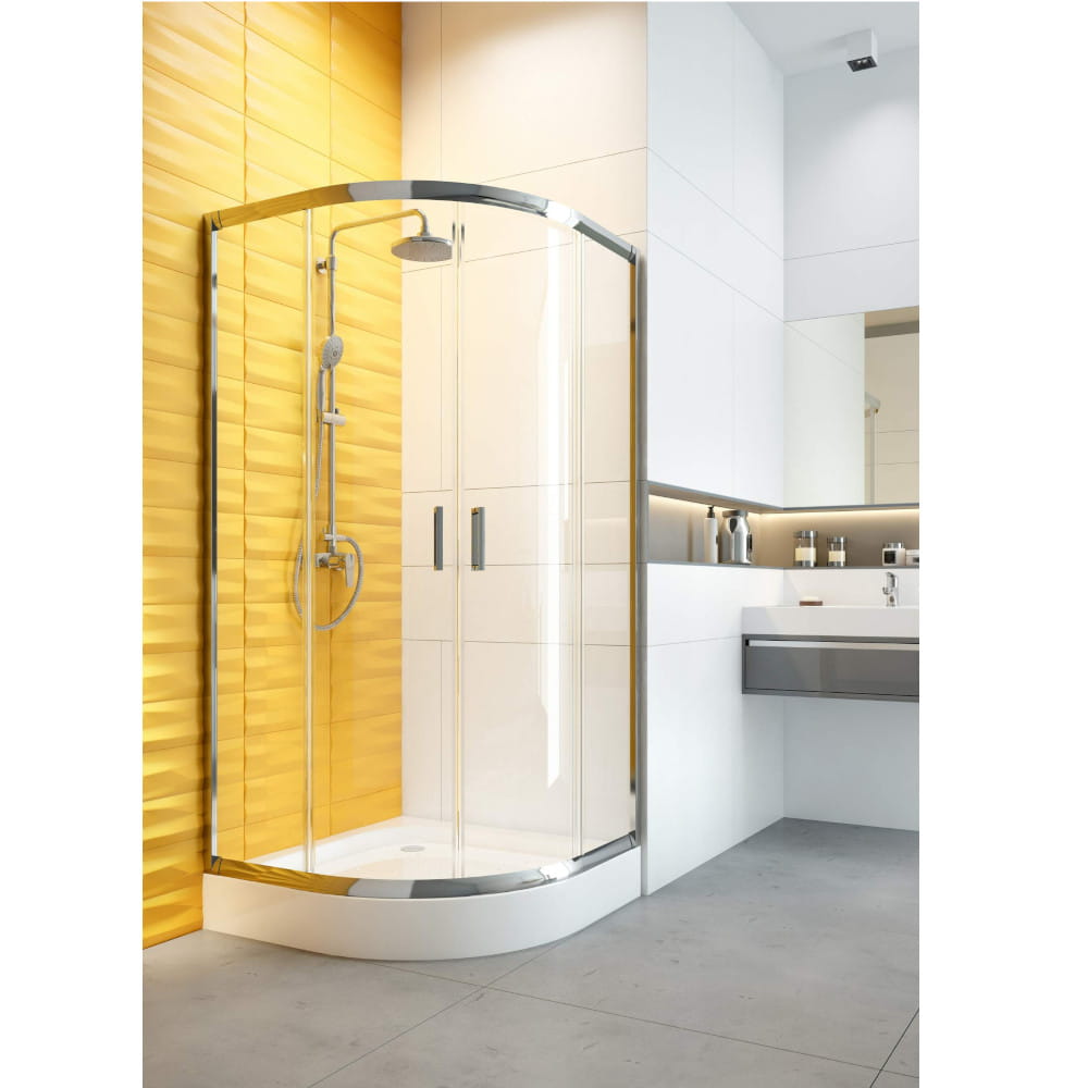 Kabina prysznicowa Funkia wykonana jest z transparentnego szkła hartowanego o grubości 5 mm. Można ją montować na brodziku, lub bez niego, bezpośrednio na płytkach. Kabina wyposażona jest w wypinane dolne rolki oraz system cichego zamknięcia. W zestawie znajdują się profile niwelujące krzywiznę ścian.