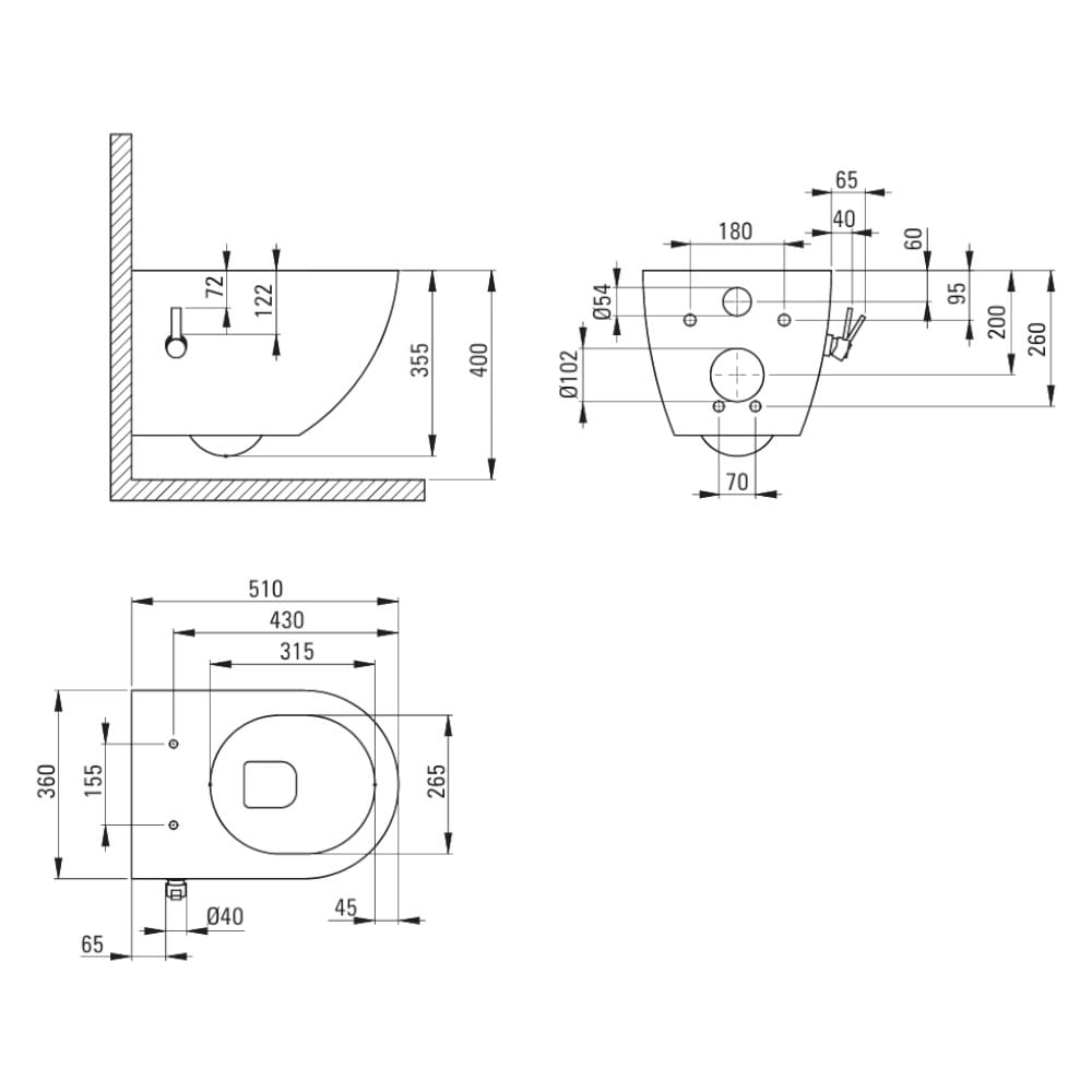 - Miska bezkołnierzowa ułatwiająca utrzymanie czystości i higieny