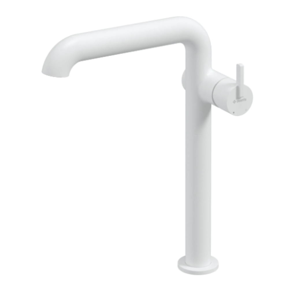 Deante Silia bateria umywalkowa wysoka stojąca z prostokątną wylewką bianco