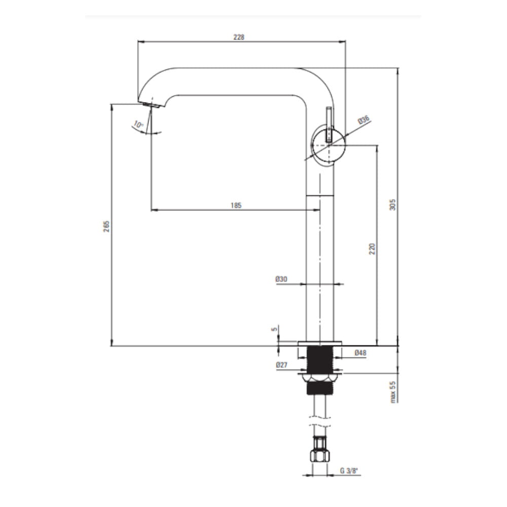 Zasięg wylewki bateryjnej [mm] 185