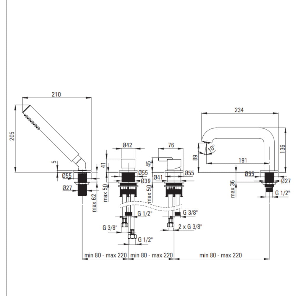 Zasięg wylewki bateryjnej [mm]: 191