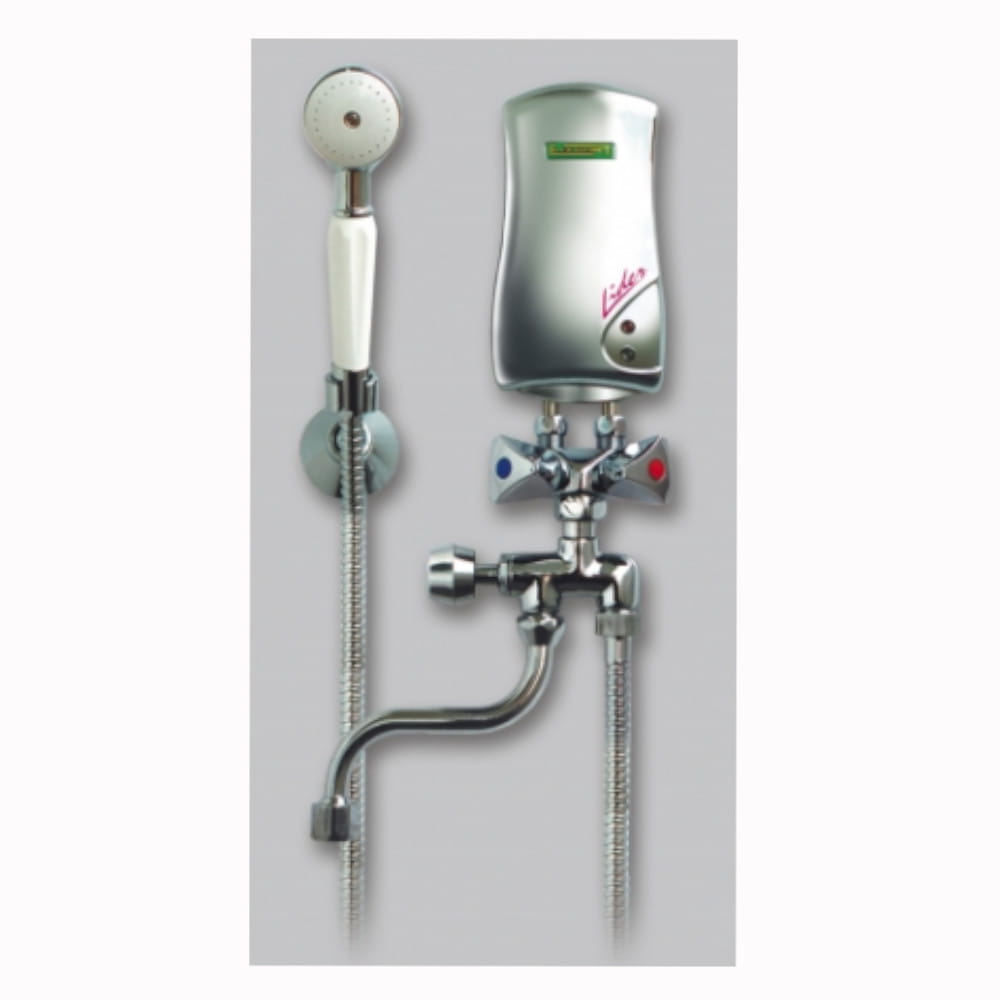 Elektryczny przepływowy ogrzewacz wody typu LIDER jest ogrzewaczem jednopunktowym wyposażonym w komplet prysznicowy. Cechy ogrzewacza: natychmiast załącza się podczas przepływu, mała wrażliwość na zapowietrzenie się instalacji wodnej, wysoka jakość układu grzejnego, elektroniczne zabezpieczenie systemu sterowania, wysoki stopień szczelności
