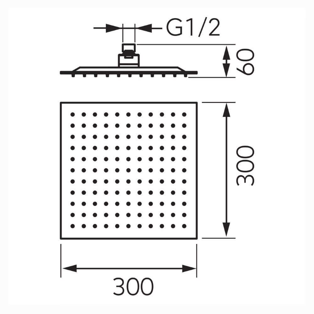 Wymiary głowicy deszczowni: 300x300 mm