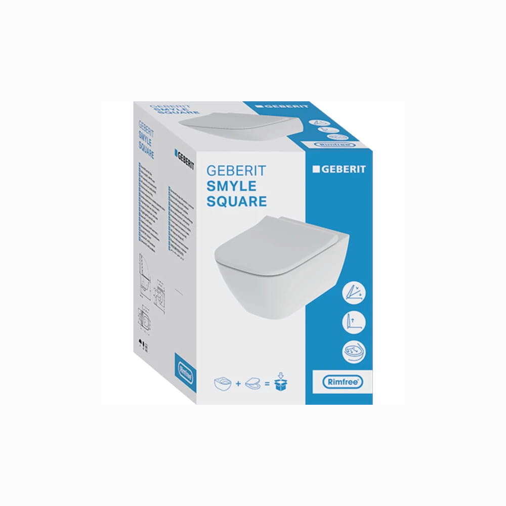 GEBERIT SMYLE SQUARE ZESTAW MISKA WISZĄCA LEJOWA PROSTOK. RIMFREE KRYTE MOCOWANIA + DESKA WOLNOOP. CLIK2CLEAN 500.687.01.1 (6I)