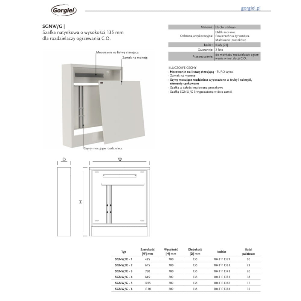 Typ: SGNW/G-2 szafka natynkowa do rozdzielaczy ogrzewania