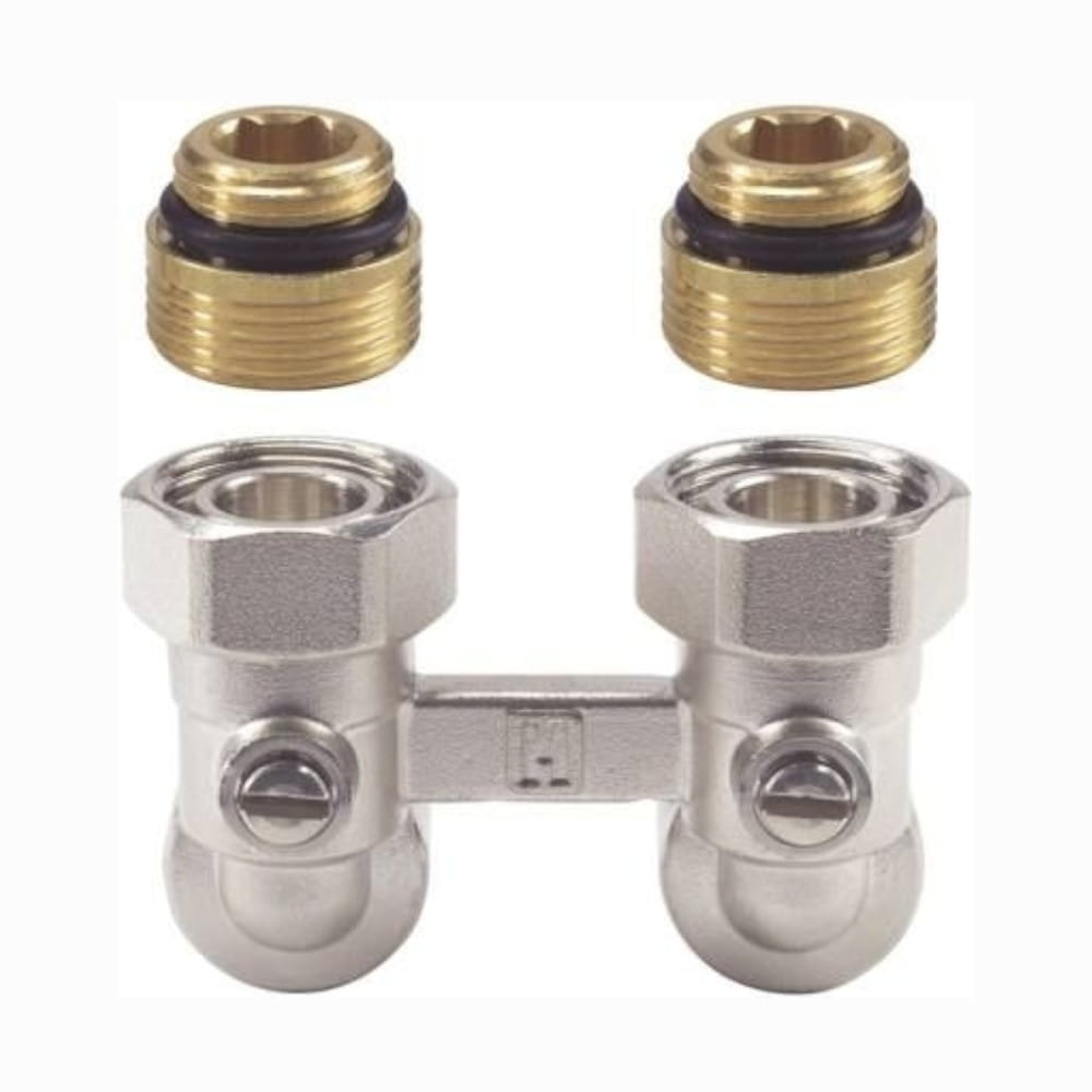 Zawór podwójny odcinający, do grzejników kompaktowych, uszczelnienie stożkowe