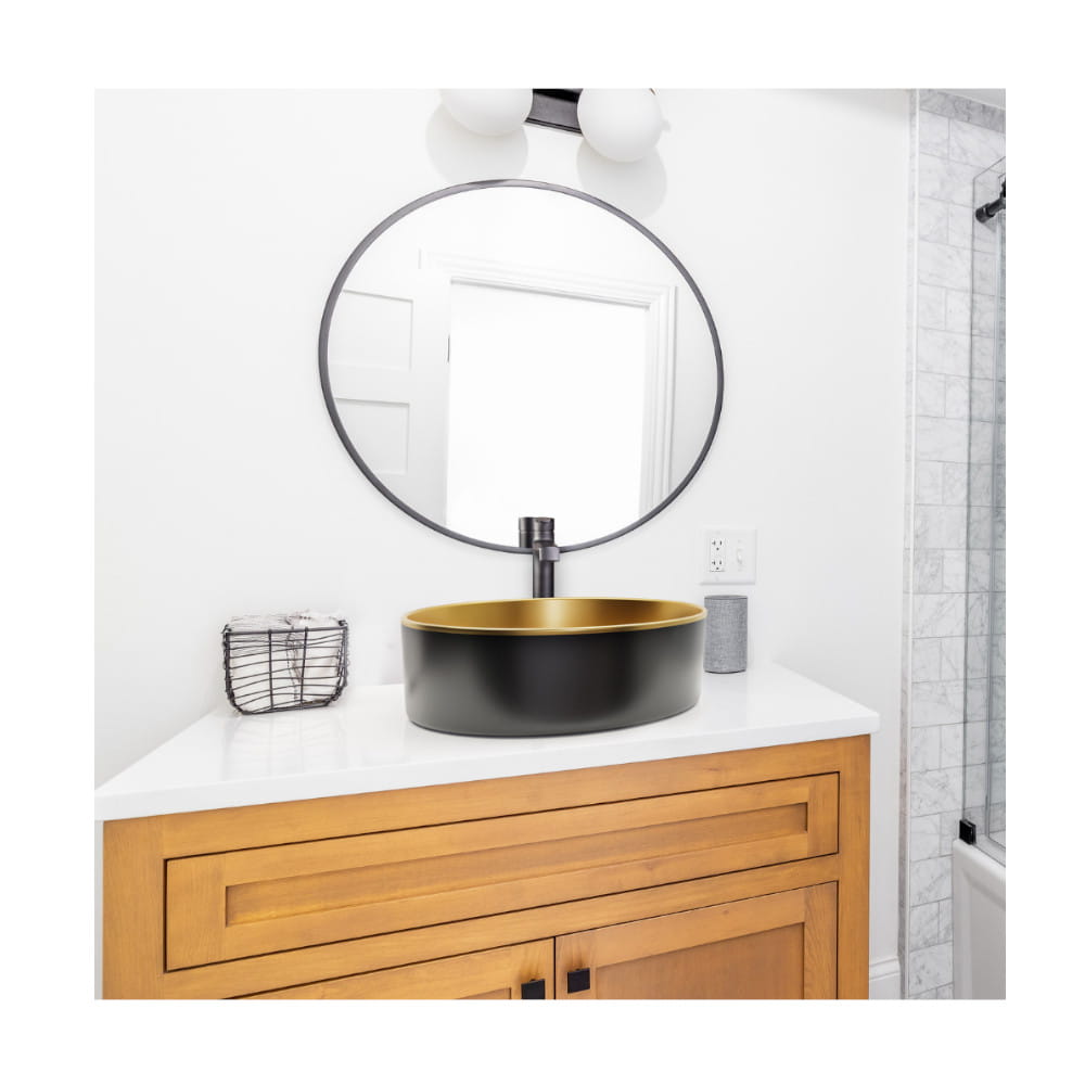Invena Kos umywalka nablatowa okrągła 41,5x41 cm czarno/złoty mat