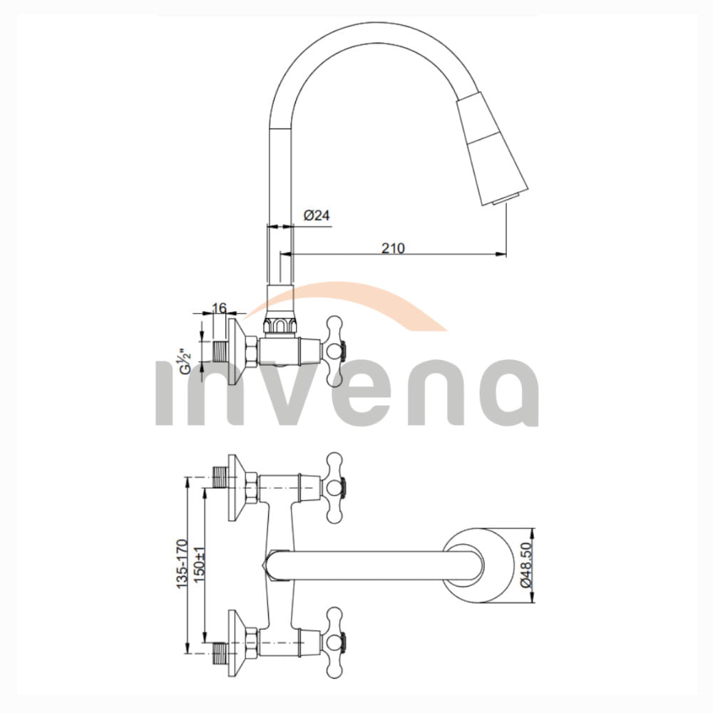 Invena Roma bateria zlewozmywakowa ścienna czarna