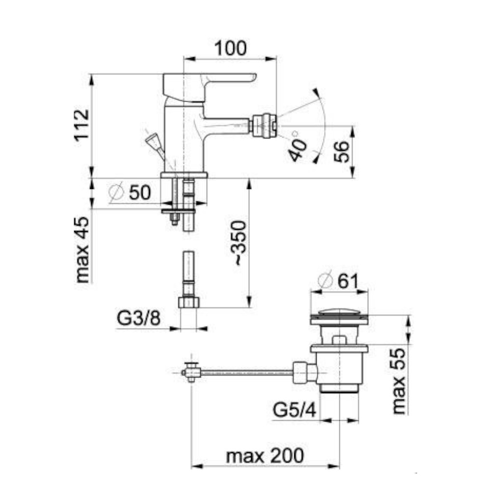 opakowanie zawiera: spust sterowany 5/4" z przelewem, komplet mocujący z uszczelkami, przyłącza elastyczne M10x1/G3/8" (L=350 mm, 2 szt.)