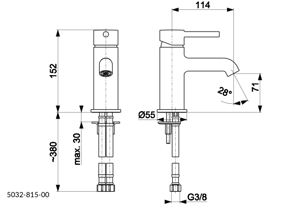opakowanie zawiera: spust klik-klak mały z przelewem, komplet mocujący z uszczelkami, przyłącza elastyczne M10x1/G3/8" (L=350 mm, 2 szt.)