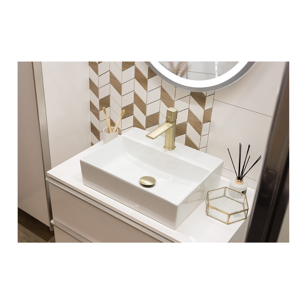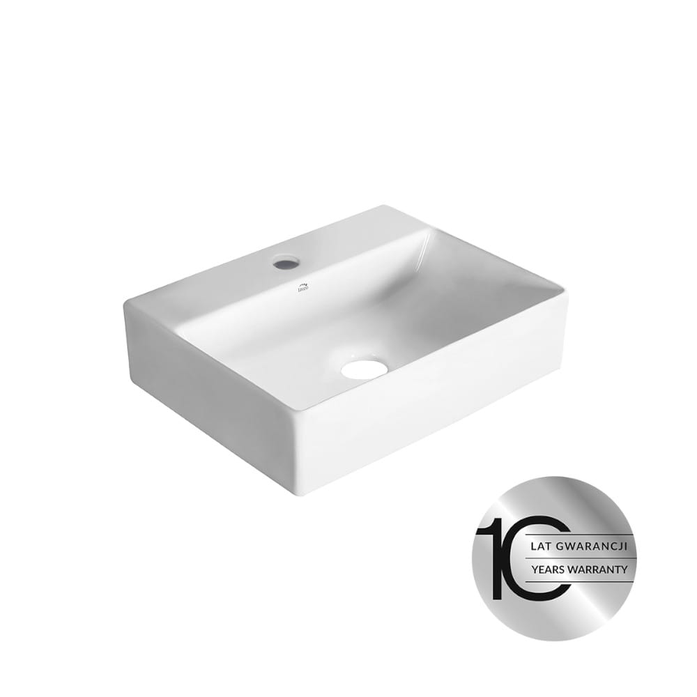 Laveo Kvadrato umywalka nablatowa/ścienna ceramiczna z miejscem na baterie biała 46 x 36 cm