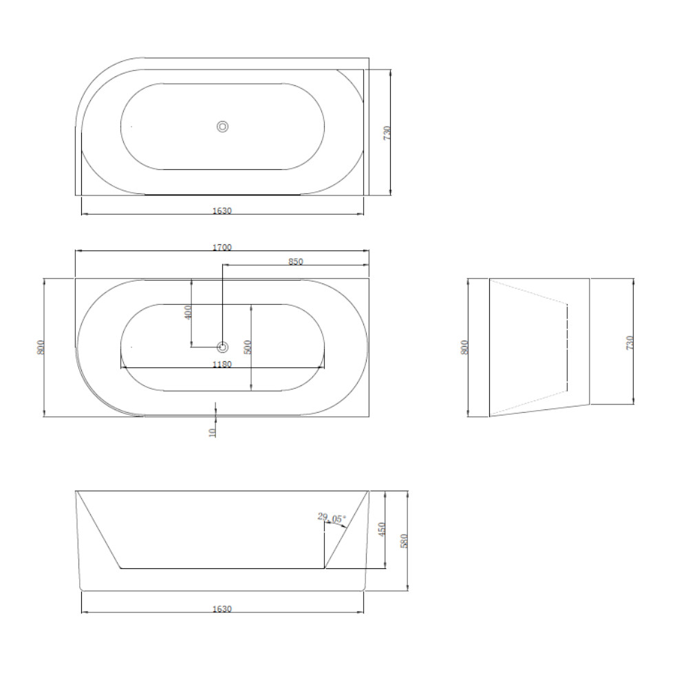 | Dłuższy bok | 170 cm |