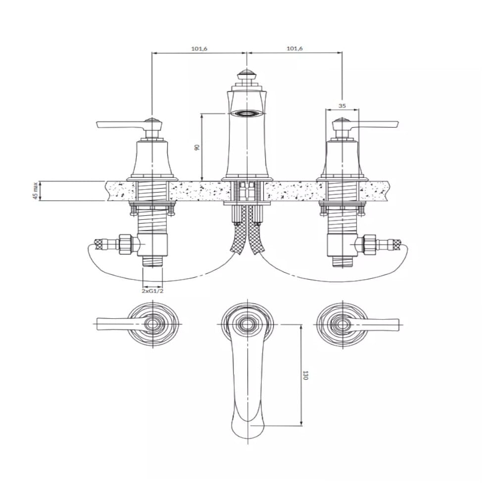 Omnires Armance bateria umywalkowa 3-otworowa chrom