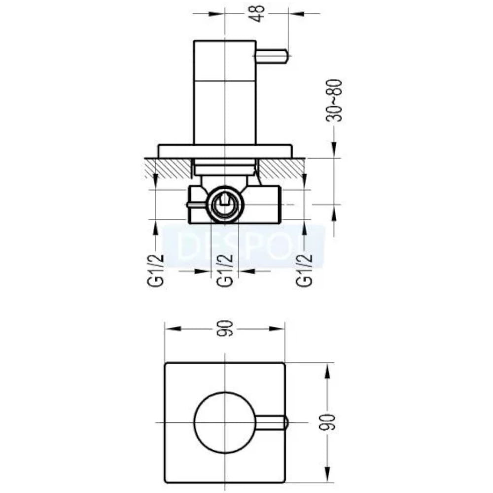 Jedno wejście wody zmieszanej: 1/2”, trzy wyjścia wody zmieszanej: 1/2”