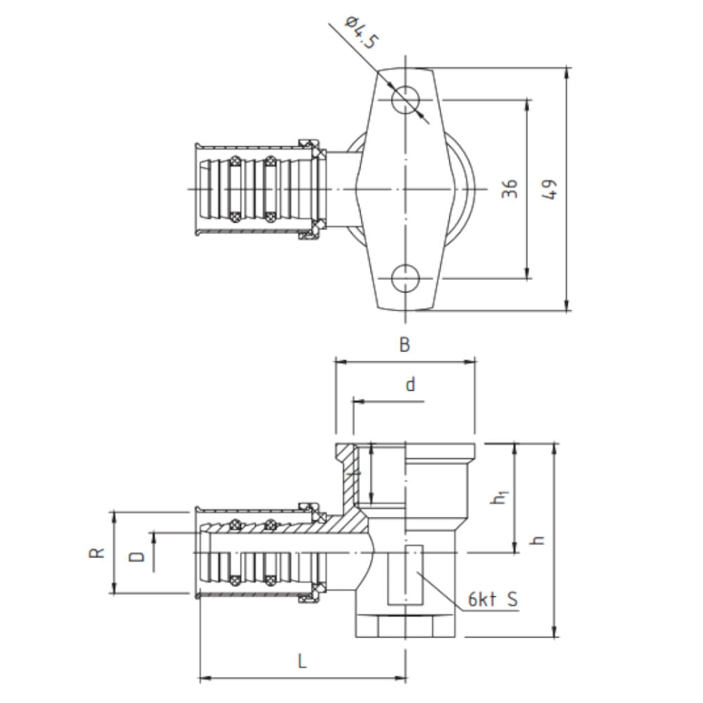 Perfexim 738 Kolano zaprasowywane z mocowaniem GW 20x1/2
