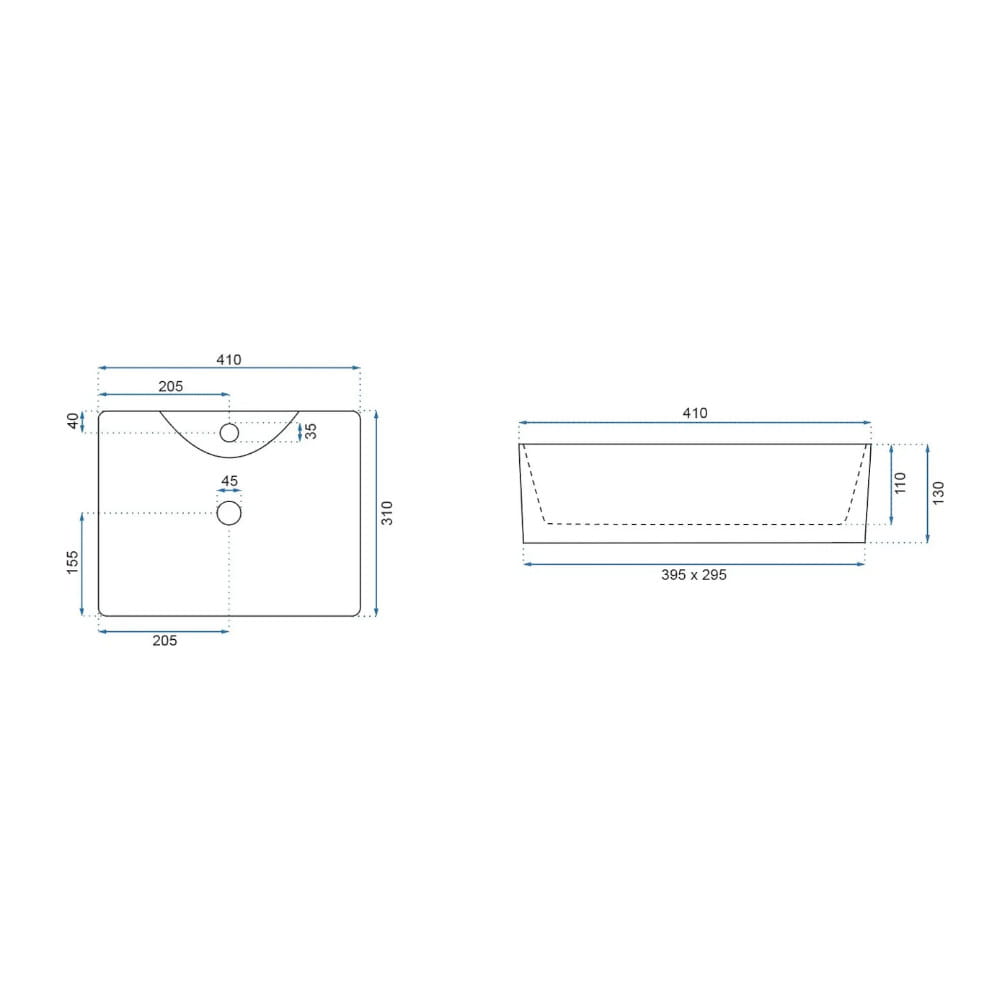 Długość umywalki : 410 mm