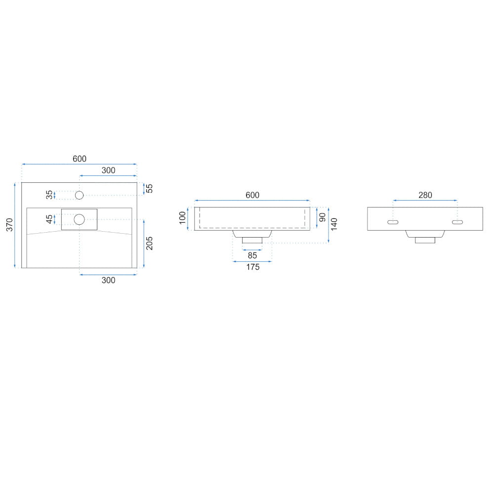 Głębokość umywalki (mm): 90