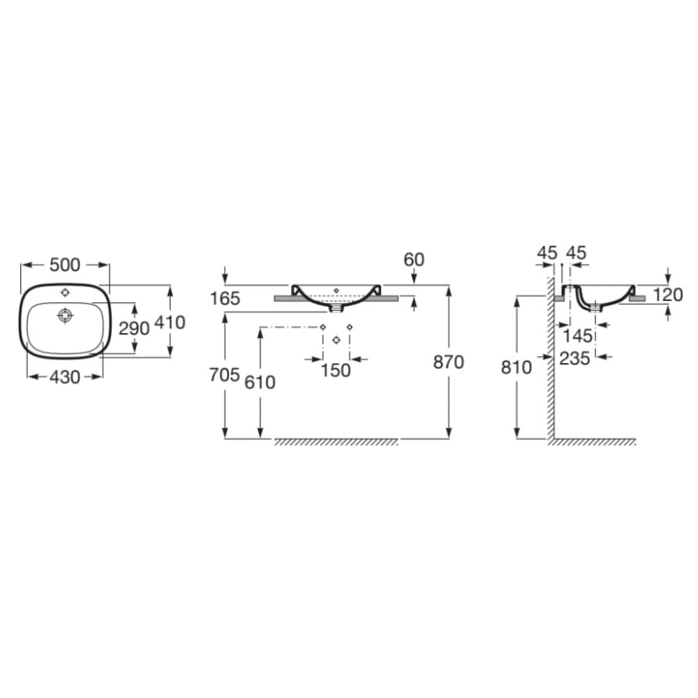 Roca Debba umywalka blatowa 500x410 mmm biała