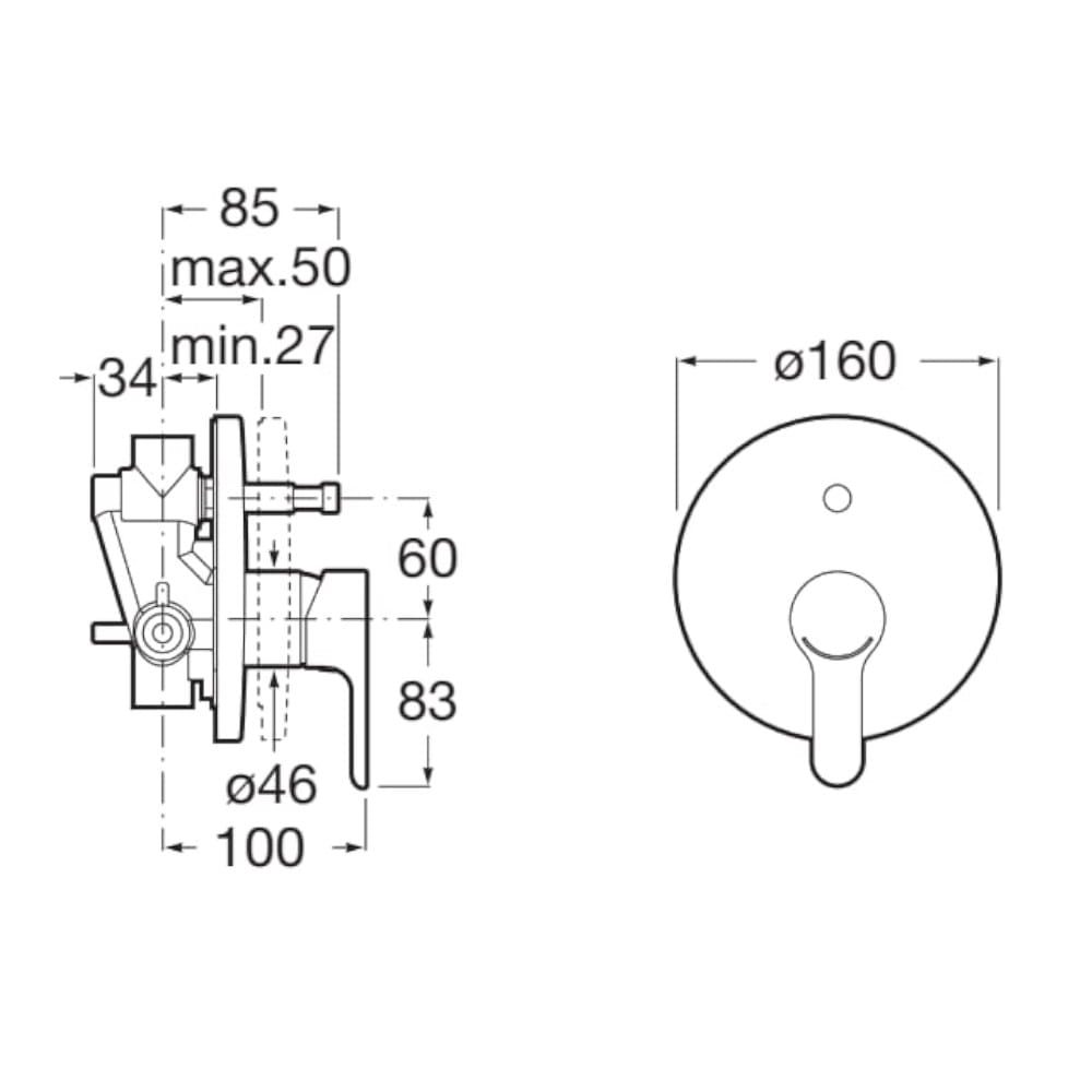 Roca L20 bateria podtynkowa wannowo - natryskowa chrom
