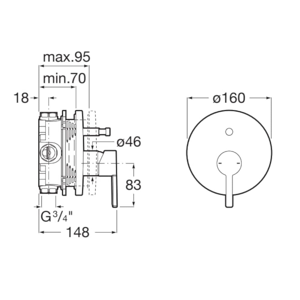Roca Naia bateria podtynkowa z przełącznikiem wannowo- natryskowa titanium black