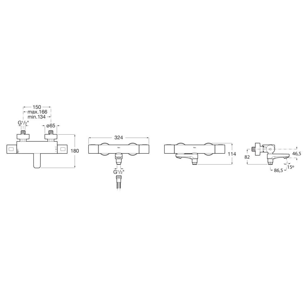 Roca T-1000 bateria ścienna wannowo - prysznicowa titanium black