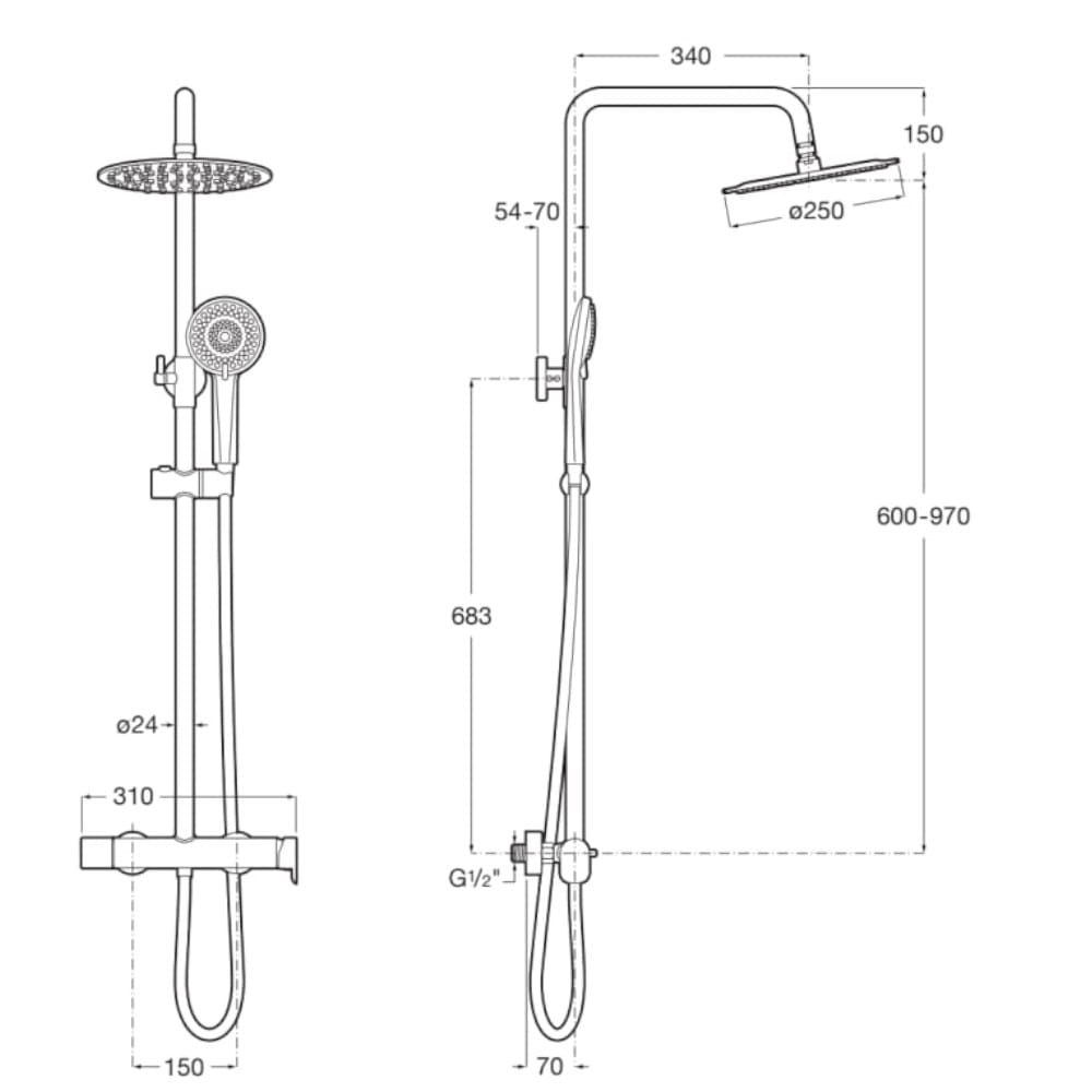 Roca Viega Plus kolumna prysznicowa ścienna z baterią i deszczownicą 250mm czarny mat