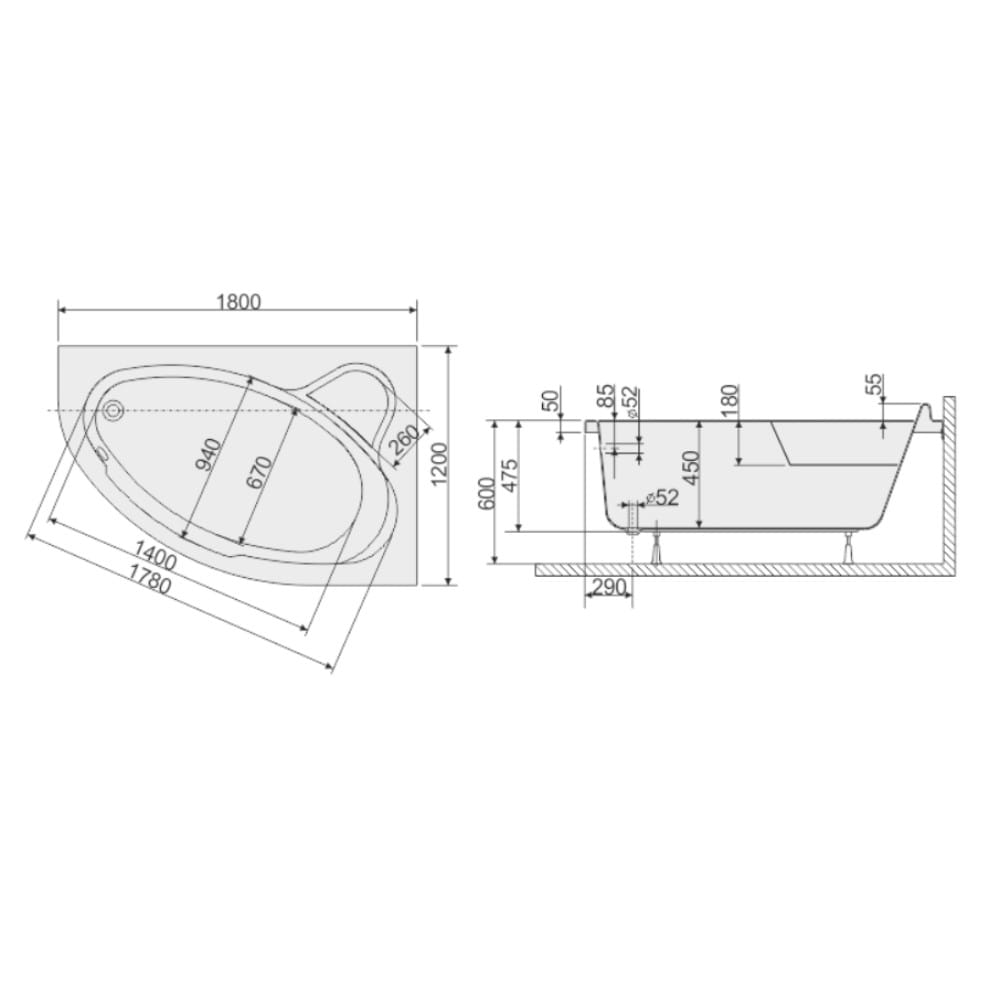 | Dłuższy bok | 180 cm |