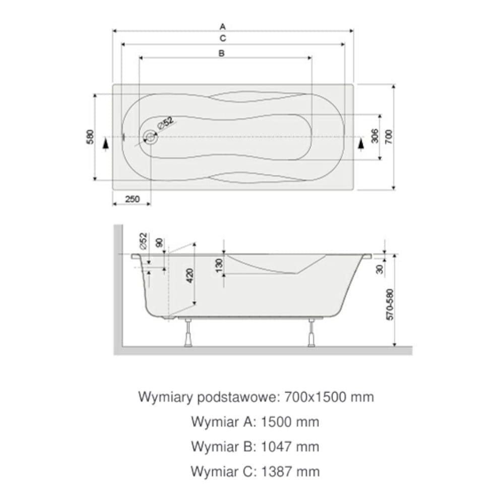 Sanplast wanna prostokątna WP/AS 70/150 ze stelażem