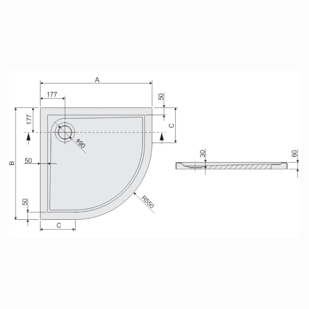 Sanpralst Prestige brodzik półokrągły zabudowany 100x100x3 cm