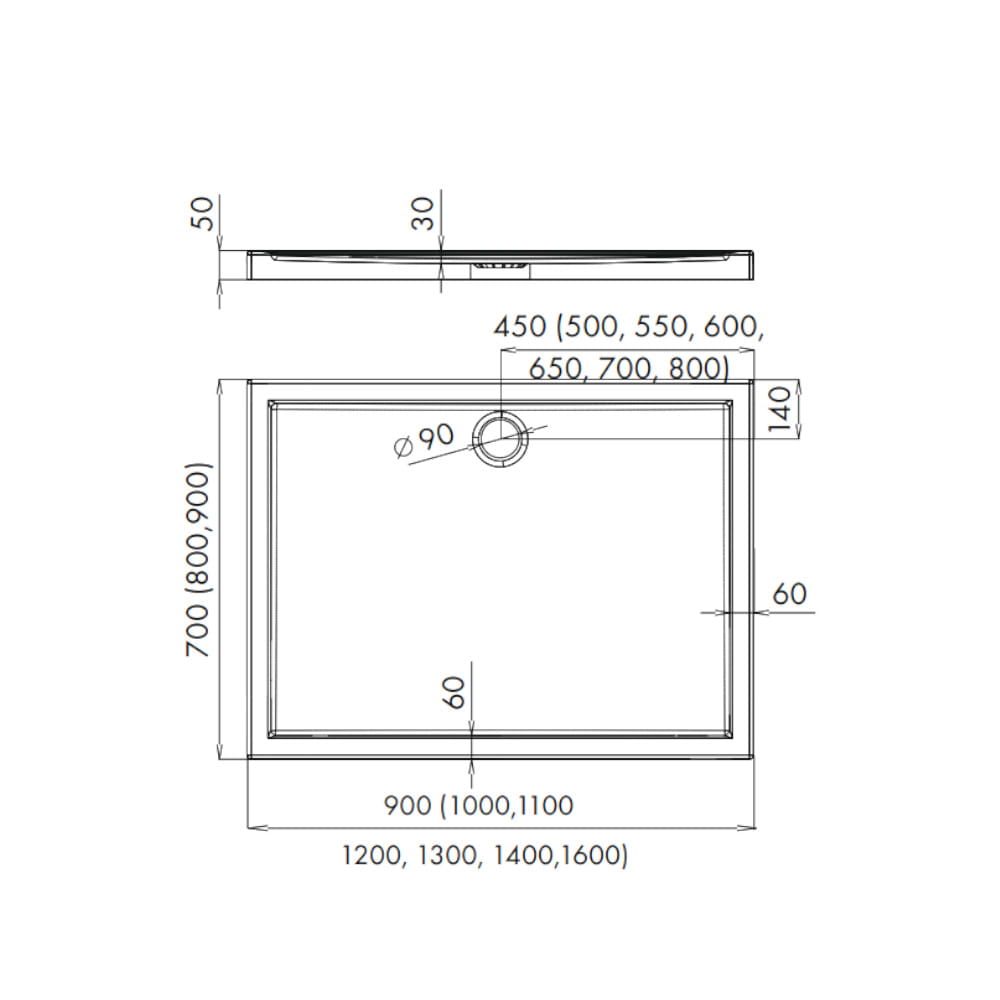 Schedpol Caspar brodzik prostokątny 80x110cm