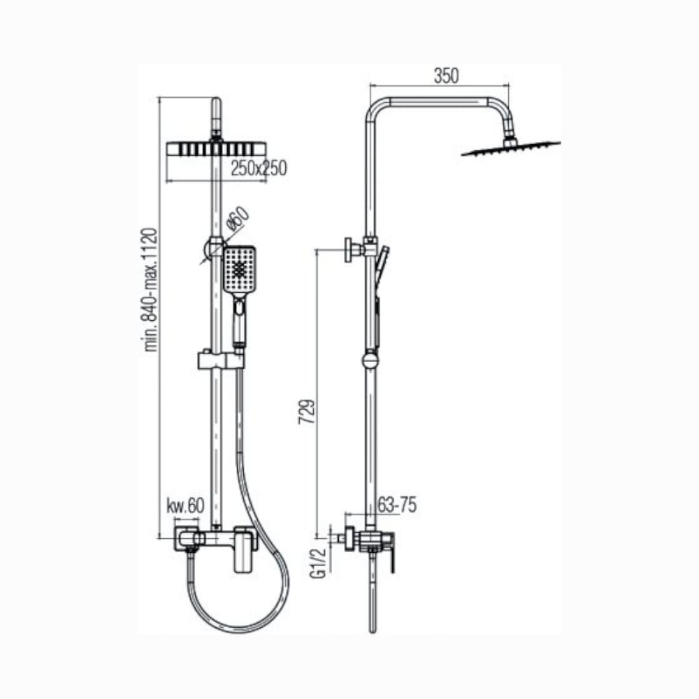 | Rodzaj | Natrysk przesuwny z deszczownicą i baterią |
