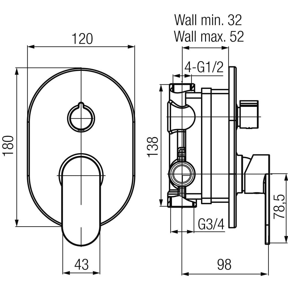 Valvex Tube bateria podtynkowa z przełącznikiem ceramicznym 3-funkcyjnym