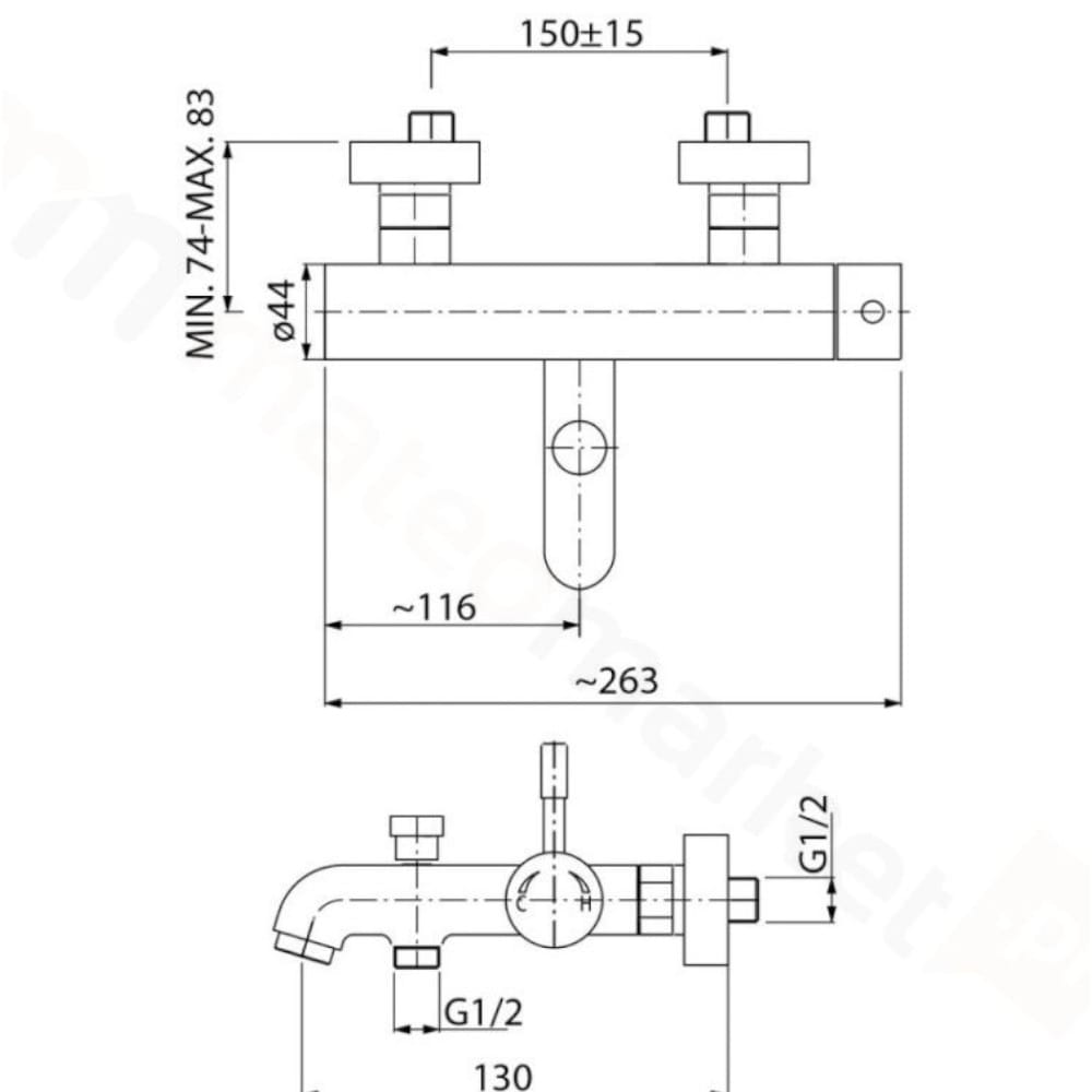 Rozstaw baterii: 150 mm
